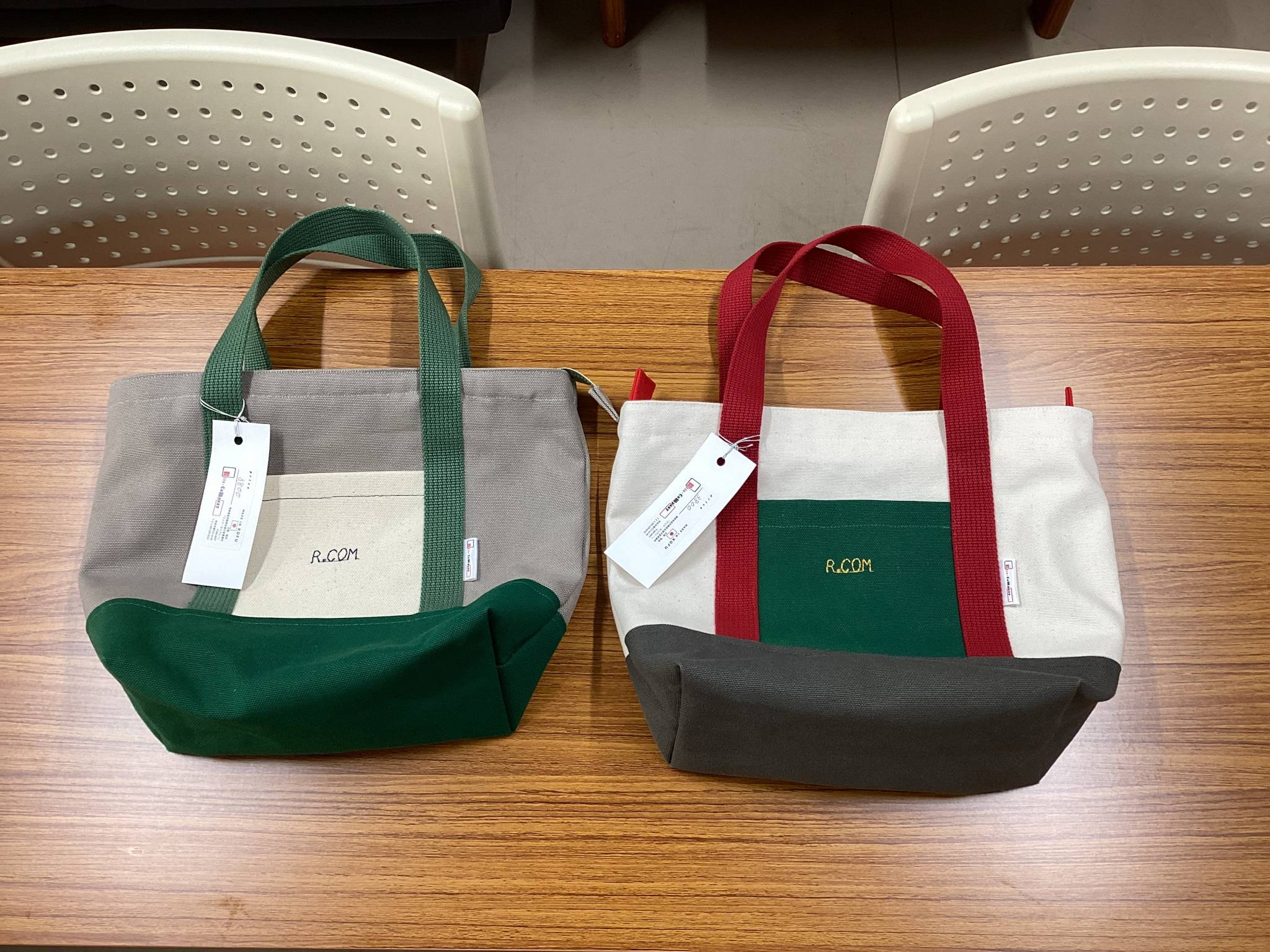 フル稼働して縫製しました帆布生地使用のオリジナルブランド R.COMトートバッグ